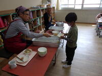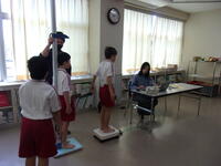 発育測定の様子です。順調に身長が伸びているか、体重が増えているかを一人一人が確認しながら測定していきます。みんな進んで行動ができていました。