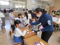 学級で活動するのが最後になるので、自分たちが作成したものをお店で売る「さくら祭り」をやっていました。教員もお客様で呼んでもらいました。とてもにぎやかに、わいわいと楽しんでいました。