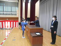 卒業証書授与式では、ご来賓をお迎えし、立派に成長した姿をご覧いただくことができました。一人一人が真剣に堂々とした姿で、校長から卒業証書を受け取っていました。その姿からは中学校でも頑張るぞという強い決意を感じました。