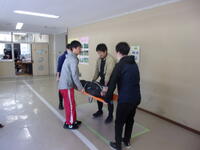 午後は教職員研修を行いました。給食の配膳研修、担架での搬送研修など、子どもたちが困らないように全教職員が共通理解をしました。