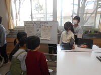4年生が総合的な学習の時間に、研究発表会で行った「片山のよさを未来につなげ ~全力アウトプット!~」の授業をアレンジして、3年生を対象に伝えている様子です。一生懸命語る4年生の姿を、3年生がまぶしそうに見ていました。