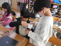 3年理科の学習で、間に物が入った場合に、磁石の力が弱まるかどうか、実験をしています。やはり実験になると目がキラキラ輝いているようです。知的好奇心が感じられました。